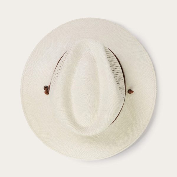 The Airway Panama Safari Hat is constructed of grade 3 genuine panama straw and features a dri-lex interior sweatband, uv underbrim, bonded leather hat brim, leather chin cord with toggle and vented crown.