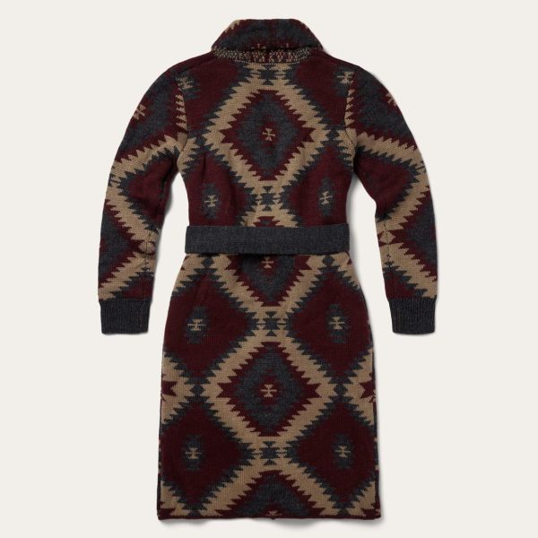 Cozy, versatile and classic, this duster sweater is knit with an Aztec print and is yarn-dyed for rich, lasting color. It features a shawl collar, front patch pockets and a self-tie at the waist. Made from a soft and comfortable wool blend, it has a flowing, easy drape and a Western-inspired style that pairs perfectly with boots and jeans.