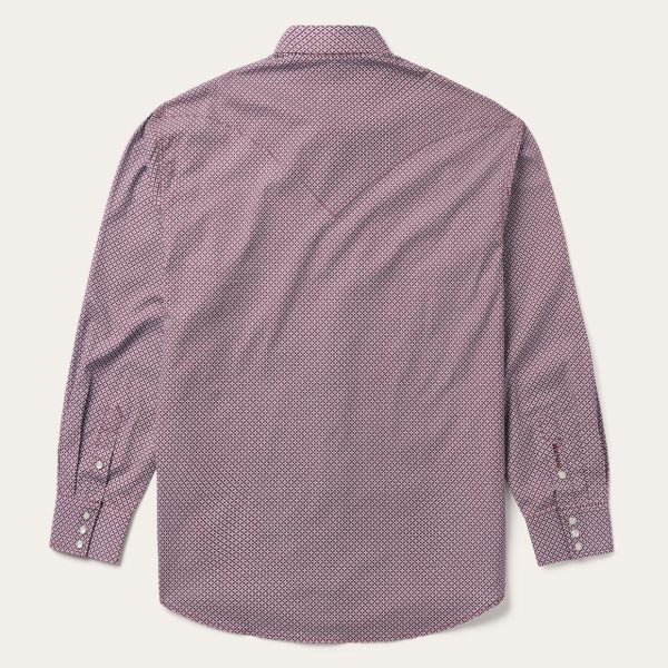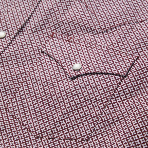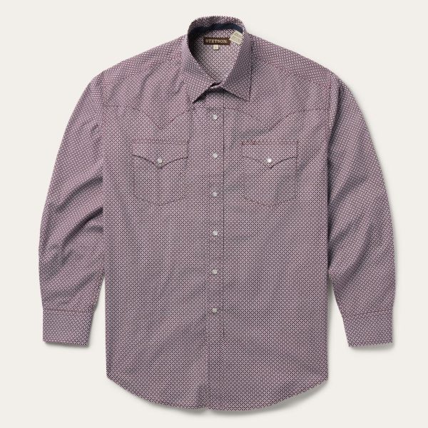 This Western shirt is crafted from a lightweight cotton poplin with an allover Blue Four Point Geo print. It features a one-point curved back yoke, snap front featuring logo pearl snaps, and three snap cuffs. The front left pocket is adorned with the Stetson “S” logo and the right sleeve placket is embossed with “STETSON”. It has a denim inside trim and is crafted with 100% cotton for quality, breathability and a soft feel that will only get better with age.