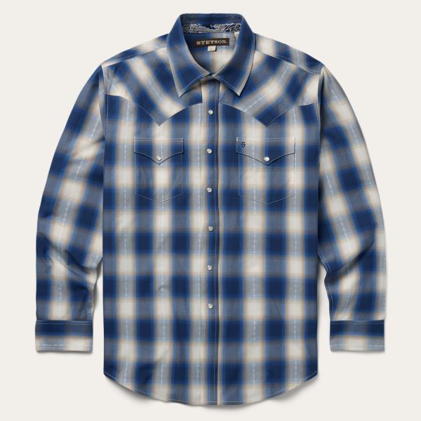 Blue Ombre Plaid Western Shirt Blue | Men Stetson Classic Cut