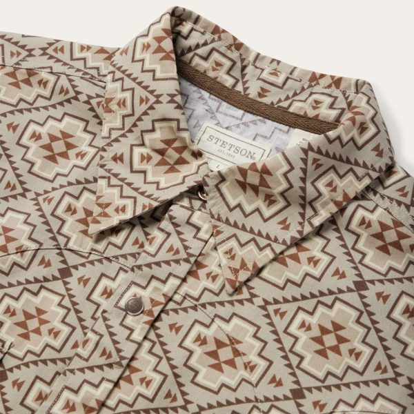 Brown Aztec Poplin Western Shirt Brown | Men Stetson Western Shirts