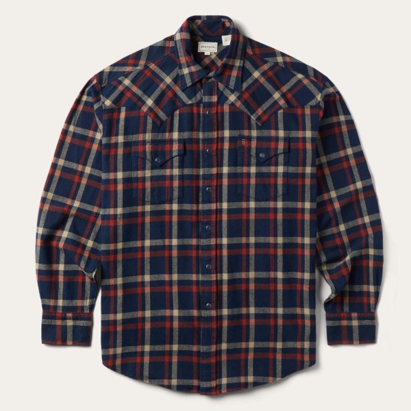 Brushed Twill Plaid Shirt Blue | Men Stetson Flannel Shirts