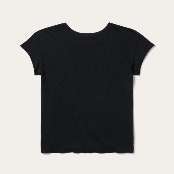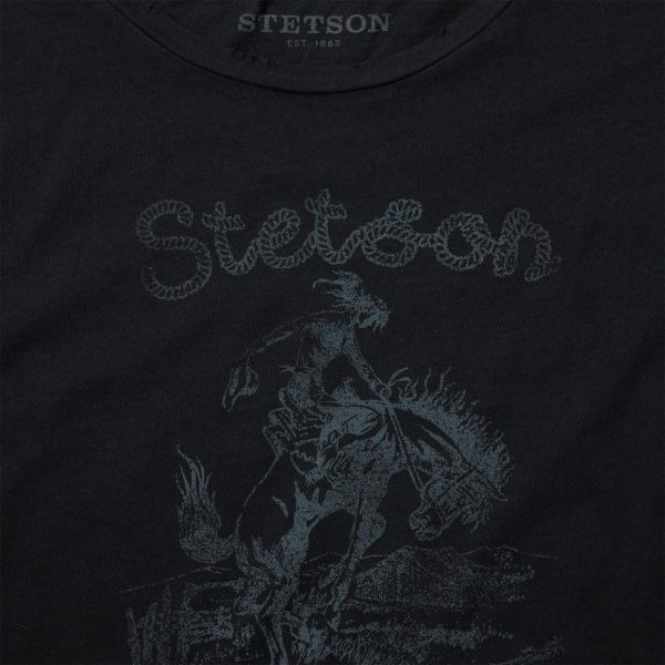 With easy style and maximum comfort, our graphic tees are made from airy 100% cotton and screen-printed with custom signature graphics. This vintage-inspired black tee has been gently distressed and garment washed, giving it the perfect worn-in look and feel. It features slight drop shoulders, raw edge short sleeves and a show-through cream-colored bucking cowboy print.