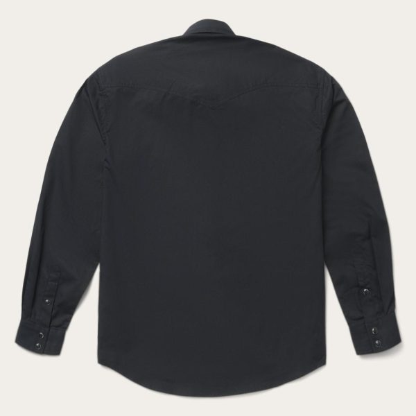 This premium Western shirt is constructed with triple needle stitching for toughness and has a classic, loose cut for riding and outdoor activity. It’s made from 100% cotton poplin that hangs well while keeping its shape and only gets better with age. Two snap-closure pockets, a spread collar, and a one-point curved back yoke give this button-down the perfect dose of character.