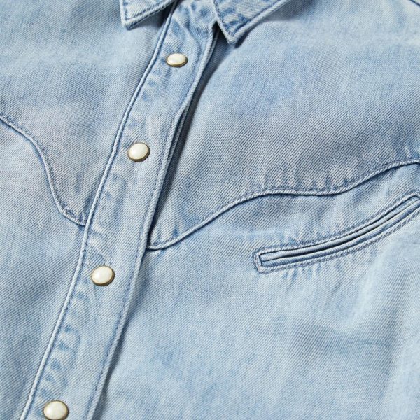 This snap-front western shirt is constructed with extremely soft Tencel denim and features a 3-point stylized curved back yoke, single point curved front yokes, and smile pockets to round out a modern western look that’s at home out on the ranch or out on the town.