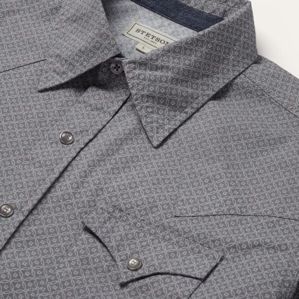 Diamond Print Western Shirt Grey | Men Stetson Western Shirts