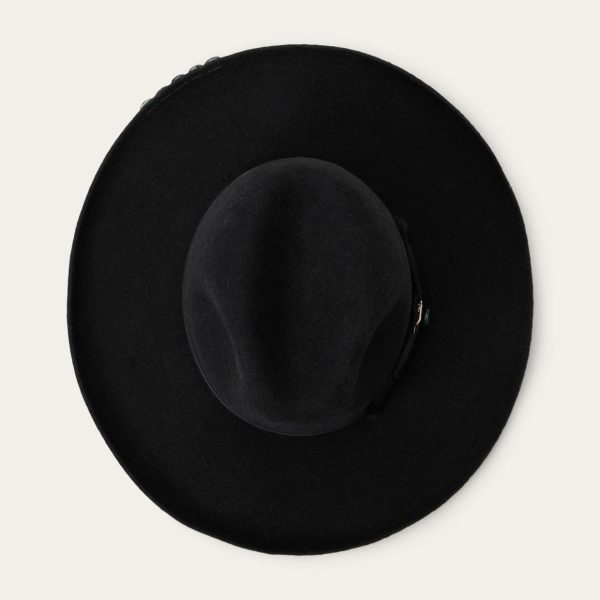 Made with pride in Texas, the Eureka is a statement-making style with a touch of Southwestern flair. Crafted of quality felt with a firm finish, it has a pinch front crown, pencil-curled brim augmented with turquoise stones and a wide grosgrain hatband with a turquoise stone accent and shovel pin. Back in 1865, while stuck in a rainstorm in the Colorado Rockies, John B. Stetson had his fateful eureka moment, creating the first-ever Stetson hat, which was purpose-built to ward off whatever the elements could throw its way. More than a century-and-a-half later, The Eureka carries on that same pioneering spirit.
