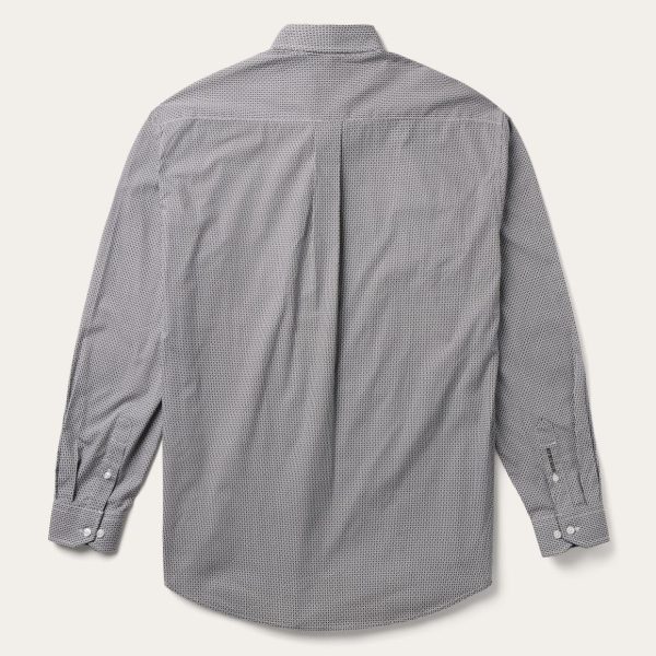 This button-up shirt is crafted from a lightweight cotton poplin with a Grey Geo allover print. It features a straight back yoke with pleat, signature Stetson “S” logo featured on the front left pocket, and “STETSON” embossed on the right sleeve placket. It has a denim inside trim and a two-button adjustable mitered edge cuff. The classic button front is finished with pearl stacked logo buttons and it is crafted with 100% cotton for quality, breathability and a feel that will only get better with age.