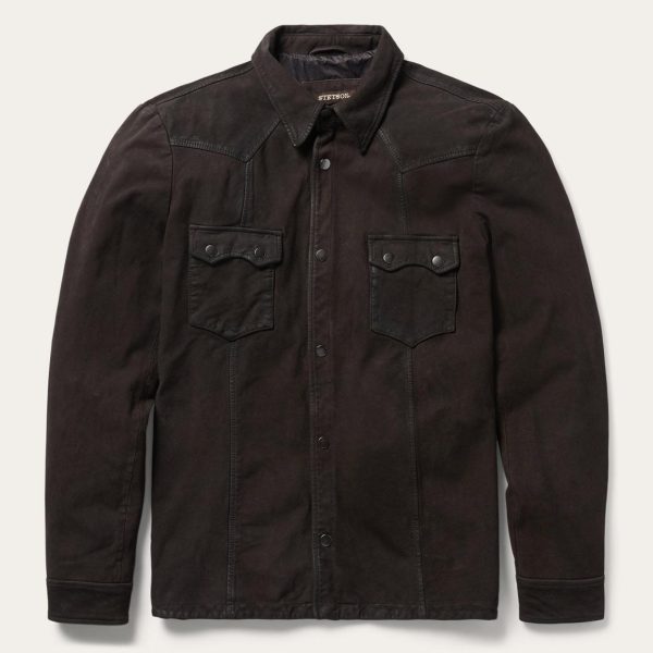 There’s only one Stetson and the same quality and attention to detail that goes into our world-famous boots and hats goes into our apparel. Always reliable in a pinch – keep this rugged leather shirt-jacket handy whether the wind picks up or a rain falls down. This no-nonsense layer has single-point front and back yokes and is finished with antique silver snaps on the placket and pockets.