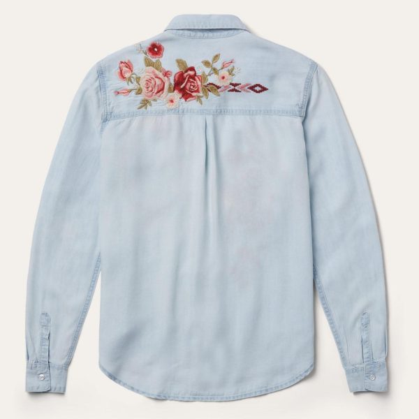 Long-Sleeved Embroidered Shirt Blue | Women Stetson Denim Shirts
