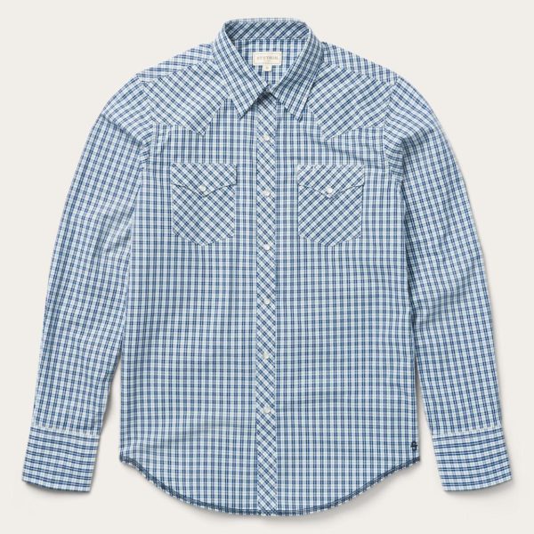 Modern Snap Front Shirt In Mini Check Blue | Men Stetson Modern Cut
