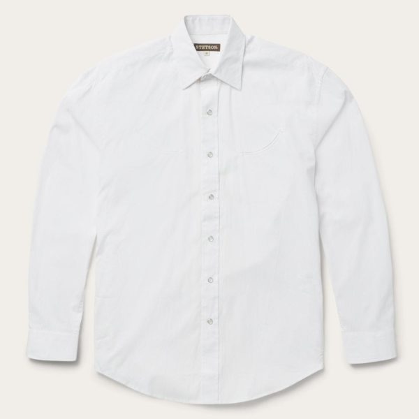A tried-and-true Western classic in a loose cut for riding and outdoor activity — this is the kind of resilient and dependable shirt you’ll reach for every morning. It’s made from 100% cotton that hangs well while keeping its shape and only gets better with age. Two western smile pockets with arrow points, a spread collar, and a one-point curved front and back yoke give this button-down the perfect dose of character.Iconic Western details include Stetson-branded snap buttons on the front placket and cuffs, as well as custom embroidery on the chest and right cuff. Exceedingly durable and always comfortable, it’s an all-occasion essential.