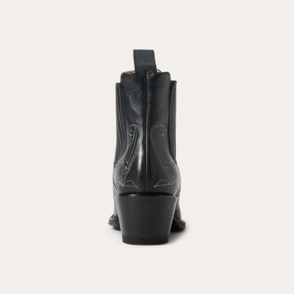 These metro toe shorty boots are handcrafted from high-quality black leather, with a 5″ elastic shaft. The vamp features a stunning, vintage-style, Western-inspired embroidered detail. Their single stitched welt design features a stacked leather heel, lemonwood pegs, brass nail construction, a stylish snip toe and an all leather sole. The cushioned insole and all-leather lining ensure comfort and a perfect fit.