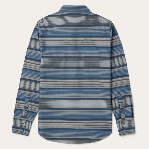 This snap front western shirt is crafted from rugged, durable 100% cotton twill and features an exclusive brown serape stripe print. Yarn-dyed for rich, lasting color, it’s made to soften over time. It has chest pockets with flaps and snaps, a spread collar and a one point ultra deep curved back yoke.